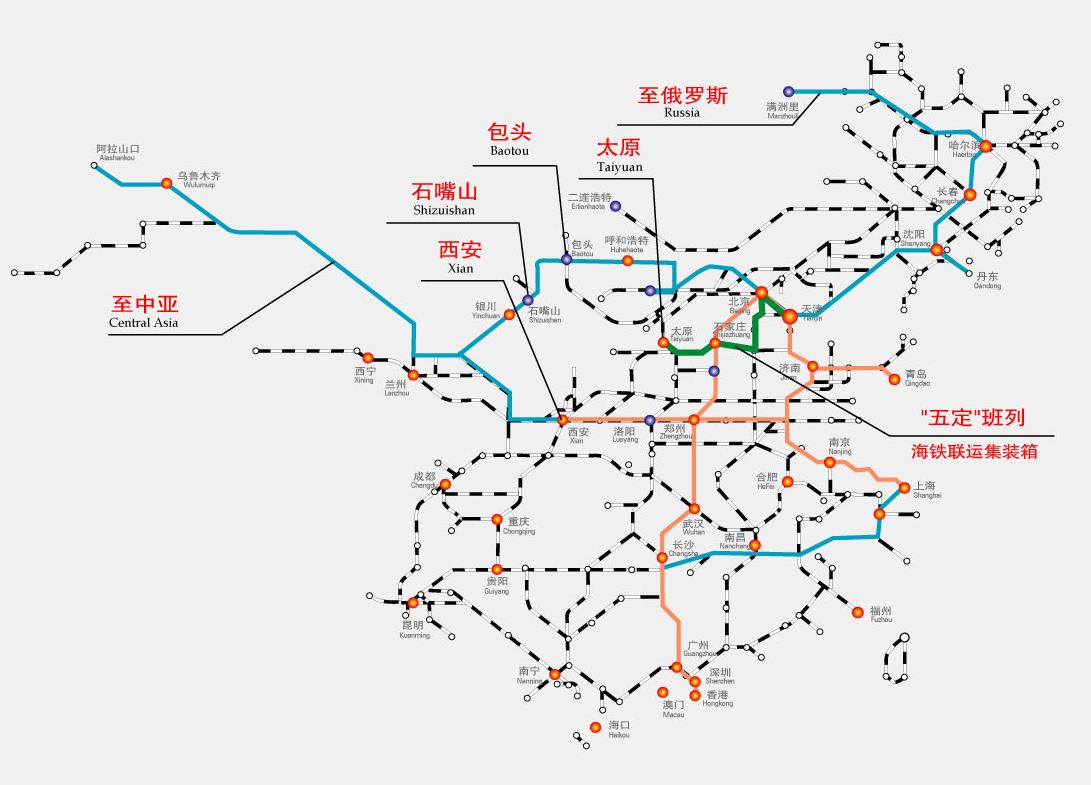 目前我司可接直營站點:天津、石家莊、上海、鄭州、合肥。途徑俄羅斯、白俄羅斯、波蘭、比利時、德國,并可完成中途鐵路轉卡車聯運到門服務。